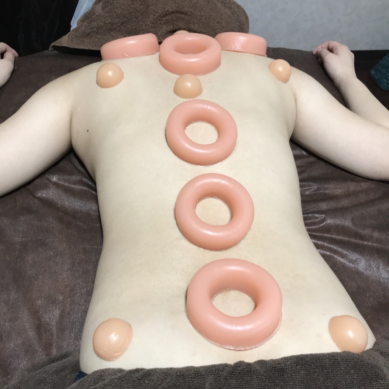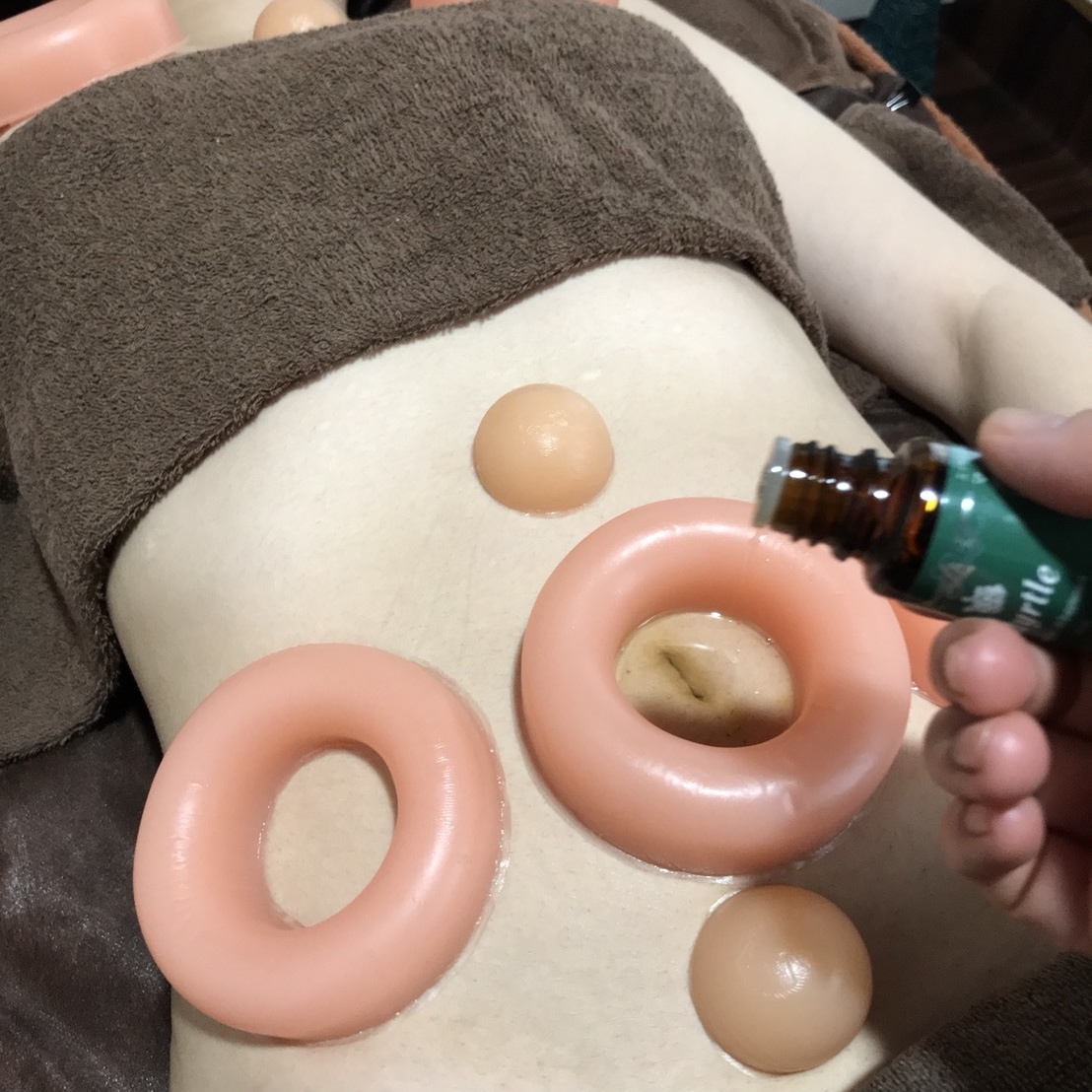 そのほか、首や肩、デコルテやお顔、お腹、脚からふくらはぎ、足裏まで使用でき、温めたオイルとアロマ精油を注いで温熱療法&デトックストリートメントを行うことによって、不眠、腰痛、肩こり、神経疲労、メンタルストレスが驚くほど和らぎます。